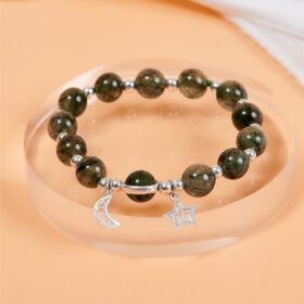 Loại vòng này được xâu chuỗi từ những viên đá thạch anh tóc xanh trơn bóng, kết hợp với những chiếc charm tinh tế và độc đáo. Các charm được lựa chọn có thể là hình dáng của lá cây, bông hoa,… mang ý nghĩa sung túc, sinh sôi và thúc đẩy sự thịnh vượng, giúp người sử dụng cảm thấy an tâm hơn trong cuộc sống.
